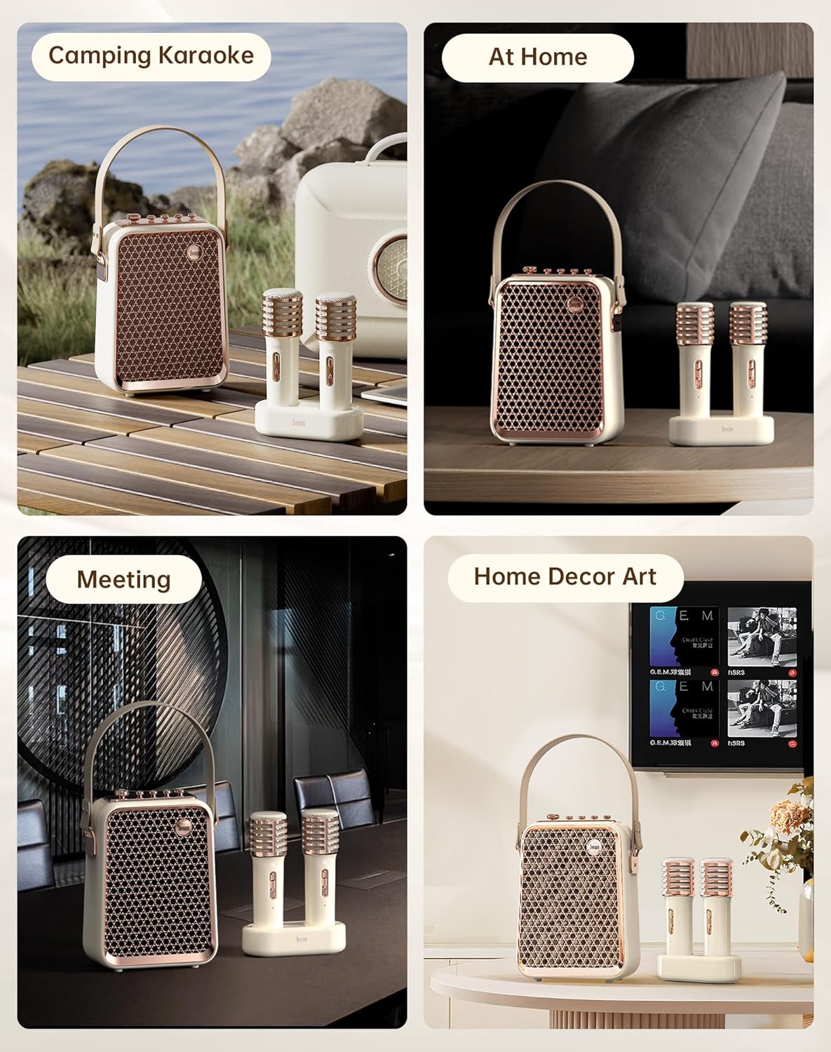 - Dual Microphones with 6 Fun Voice Modes:Choose from six unique sound modes: Superstar, Robot, Baby, Studio, Host, and Pop. Equipped with a high-quality core, it delivers clear sound with no distortion or echo, even in noisy environments.Perfect for portable karaoke machine parties!